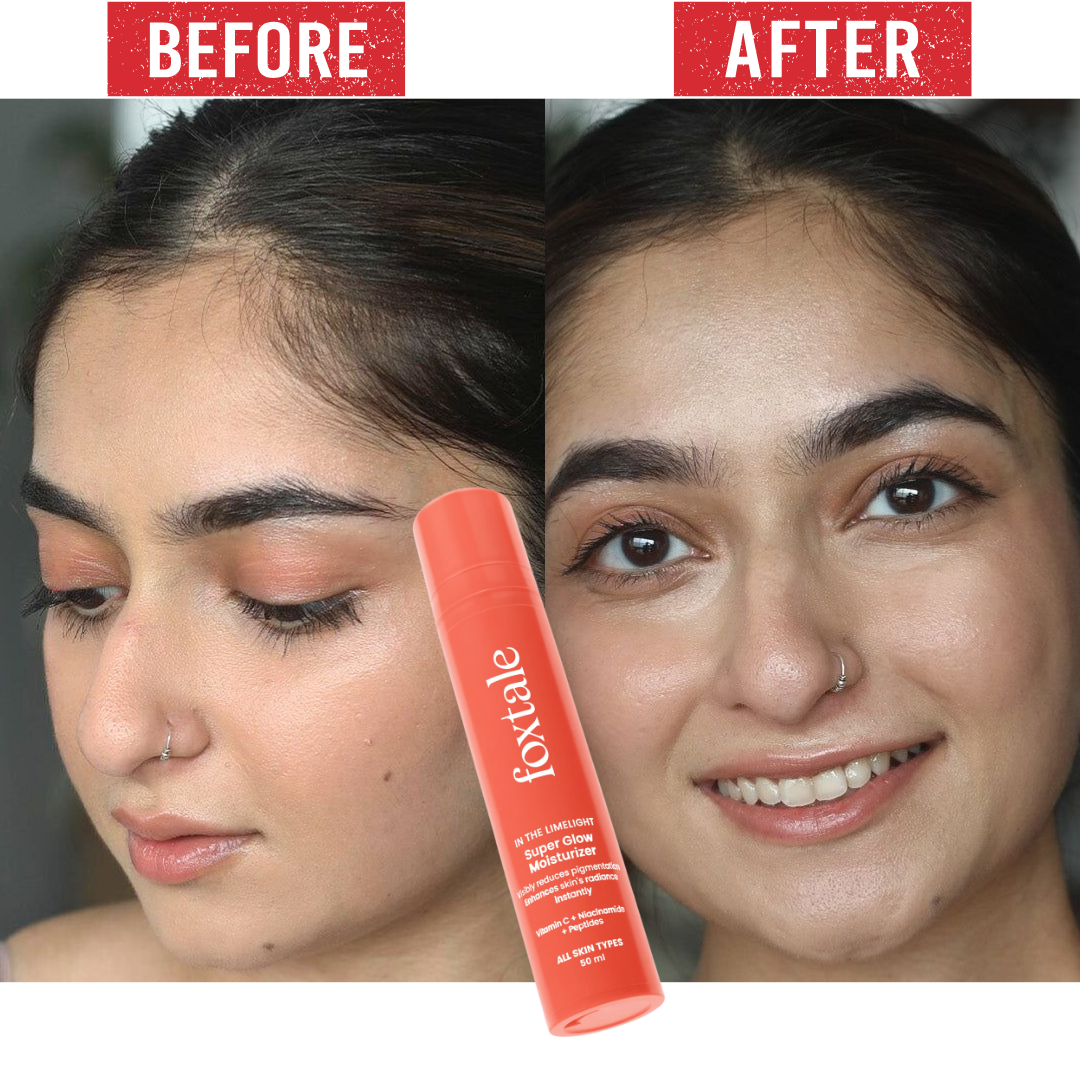 Your Daily Dose of Radiance: Make the foxtale Super Glow Moisturizer your go-to for a dose of intense brightening and hydration. Reveal your most luminous, healthy-looking skin.