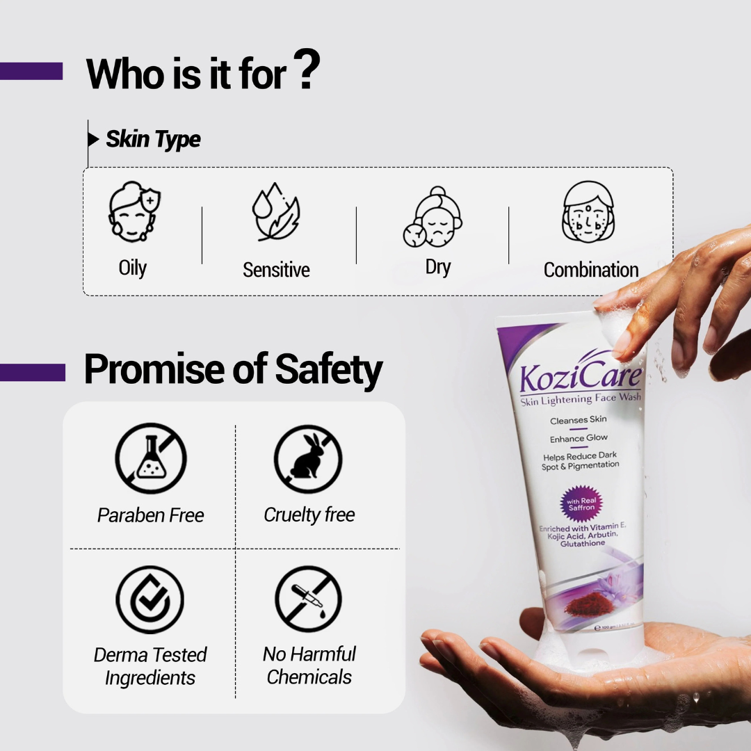 KoziCare Skin Lightening Face Wash—where nature meets science for a clearer, glowing you.