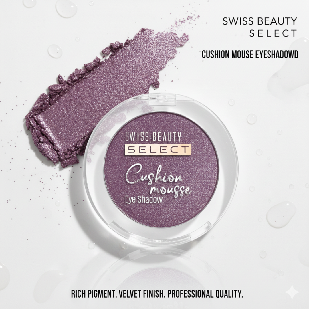 Experience luxury at your fingertips with the Swiss Beauty Select Cushion Mousse Eyeshadow. This innovative pressed mousse formula delivers rich pigment, a velvety finish, and multidimensional shine that catches the light for an ethereal, eye-catching look. Infused with nourishing Vitamin E, this eyeshadow glides on seamlessly with a bouncy, cushiony texture that blends effortlessly—with zero fallout, no glue-like mess, and no creasing. Perfect for creating everything from soft daytime glam to bold evening looks, this long-lasting shadow offers professional quality in an easy-to-use compact.